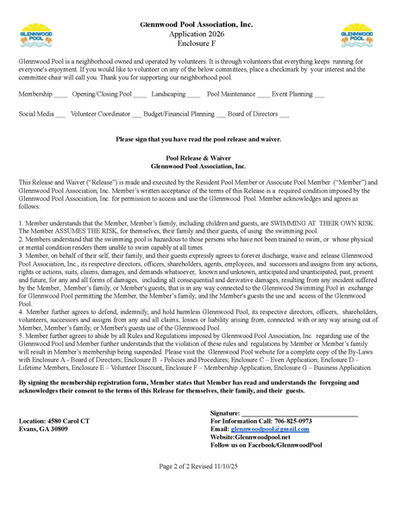 Please make checks payable to "Glennwood Pool Association, Inc."